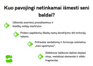 Dažnos klaidos Baldai paliekami kieme arba netinkamai išardomi.
